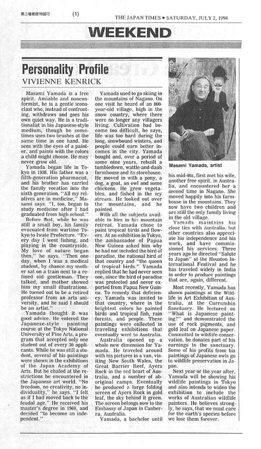 | The Japan Times ( 2 July 1994) Personality Profile - Masami Yamada, artist |