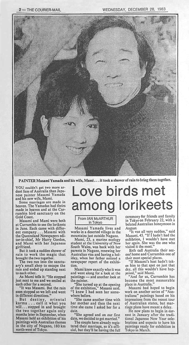 | The Courier Mail, Australia ( 28 December 1983) Love birds met among lorikeets |