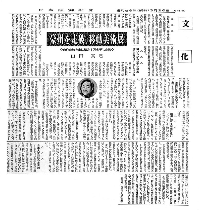 | 日本経済新聞(1984年3月26日) 豪州を走破、移動美術展 ◇自作の絵を車に積み1万6千キロの旅◇ |